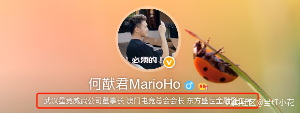 賭王去世後,何猷君更改了微博認證,去掉了賭王兒子,變成了創業公司的老闆。
