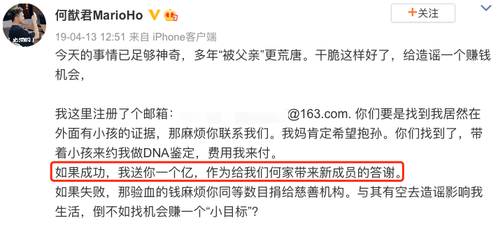 上次的説法是,如果他有私生子送一個億;