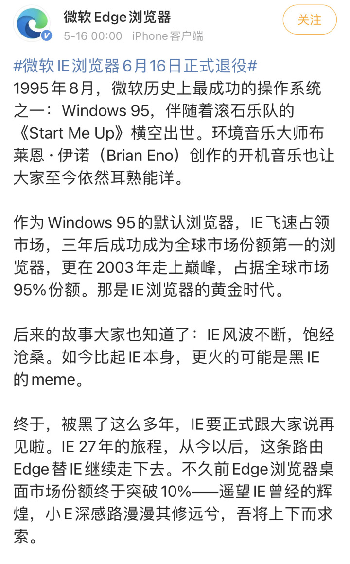 和我們年輕時相伴的 IE,最終也變成了一個名字。