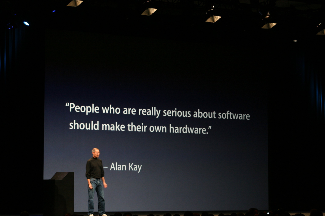 原生的最大意義是什麼?也許就是實現極致性能和體驗。喬布斯在第一次 iPhone 發佈會上引用了圖靈獎獲得者 Alan Kay 的名言:「對軟件極度較真的人,應該生產自己的硬件」。