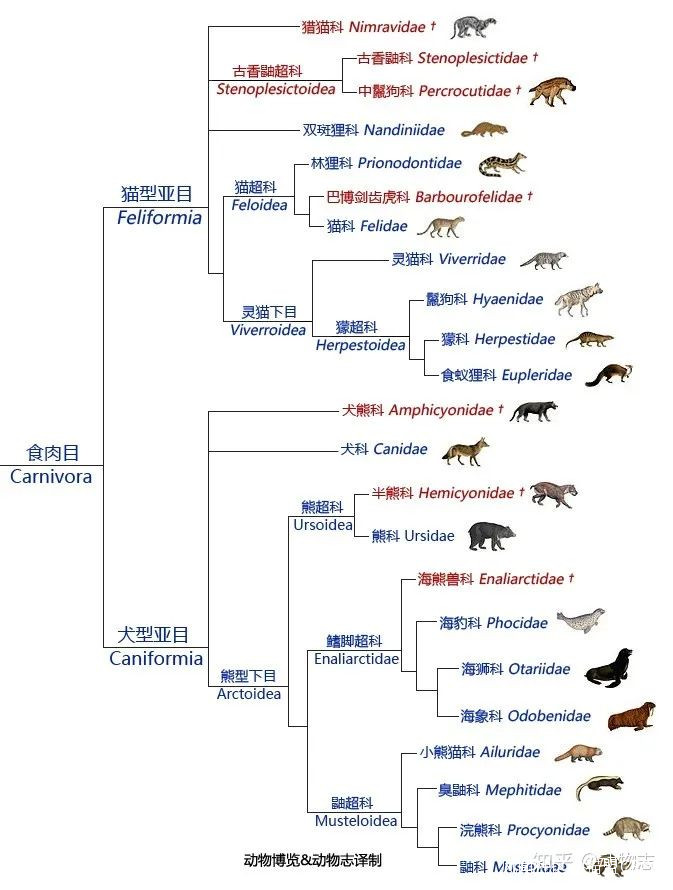食肉目動物系統發育樹 圖片來源:知乎@動物志