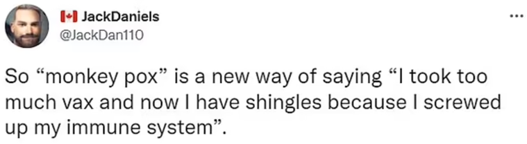 反疫苗論者們這一次宣稱,是阿斯利康新冠疫苗中黑猩猩腺病毒的mRNA載體引發了猴痘,更有甚者藉機給去年的“疫苗導致帶狀孢疹論”強行續命,宣稱猴痘不過是帶狀孢疹改了個名,應該更名為黑猩猩痘。