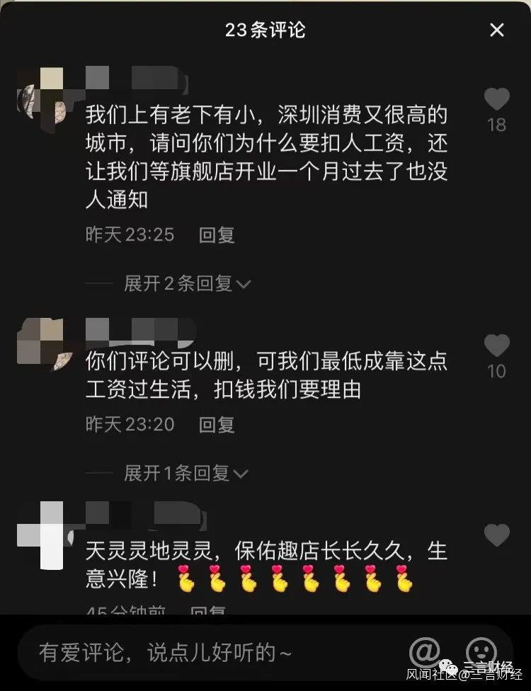 另外一條視頻評論區,有網友疑似是反映趣店深圳業務有扣工資的現象,該網友還表示羅敏刪評論。(筆者隔了幾個小時再看,這條評論的確不見了)