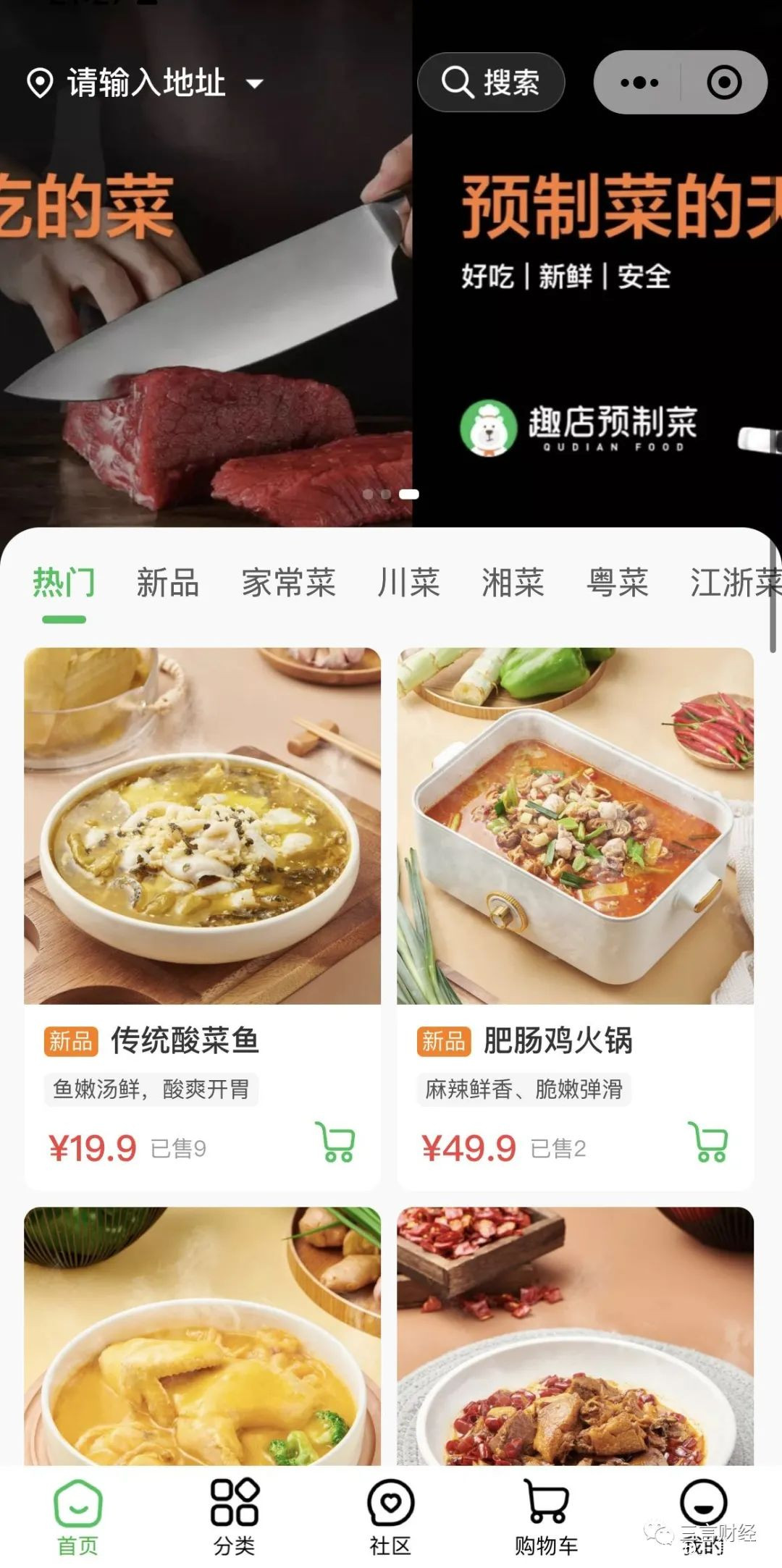 從小程序售賣的產品類別來看,趣店預製菜主要是由中央工廠生產的預包裝成品,具有規模化生產、常温保存、保質期長、運輸方便、渠道覆蓋成本低、產品便宜的特點。