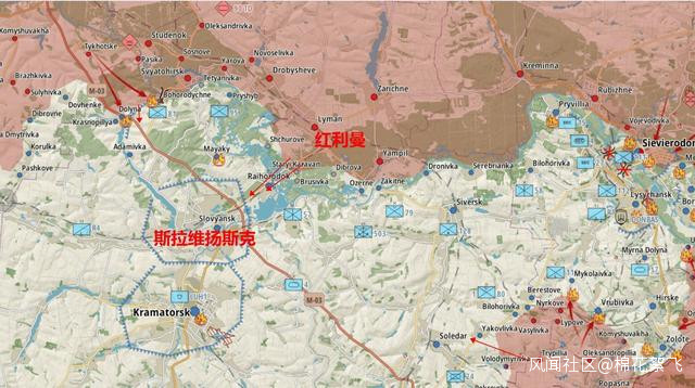 斯維亞託戈爾斯克被俄羅斯拿下後俄羅斯在橋被炸掉的情況下拿下了對面的村莊,棉花絮也沒想到,估計是烏軍被俄羅斯沒有在他們游泳的時候射擊他們的感激?或者因為他們被督戰隊炸橋把他們後路斷掉的報復?目前渡河的俄羅斯O集團軍已經順利往M3公里挺進,O集團軍之前拿下紅利曼那是相當順利流暢。紅利曼是個鐵路樞紐,伊久姆可以一直通到紅利曼,而且是附近一帶區域的高地,烏克蘭肯定不會渡河攻擊的。