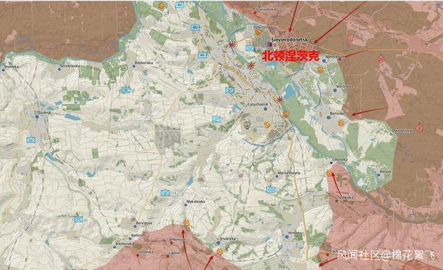6、北頓涅茨克烏克蘭軍隊在工業區棉花絮之前説600人左右,今天看幾個消息源還有2000多人,看起來烏克蘭的2波增援來的人數不止2000多人,前線消息,俄羅斯已經完全控制了北側的大橋,機場附近往前的南側大橋也還有1公里左右。工業區目前俄羅斯繼續在西部、東部同時擠壓,大部分烏軍已經被擠壓到化工廠及南部地區。