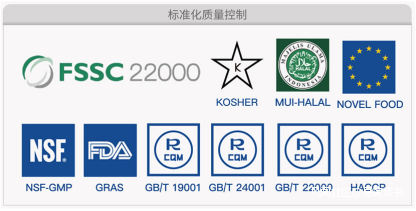 更是建立完善的安全品控體系,取得了美國FDA認證,通過歐盟136項檢測、ISO9001質量管理體系認證、ISO14001環境管理體系認證、ISO 22000 食品安全管理體系認證、危害分析與關鍵控制點(HACCP)體系認證、FSSC22000食品安全體系認證、GMP認證及非轉基因身份保持(IP)等認證,產品質量安全是潤科人的信仰!