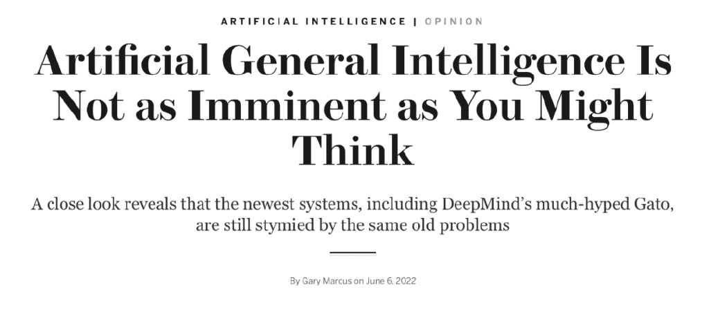 6 月 6 日,Gary Marcus 在《科學美國人》發表文章,重申了自己的觀點:AGI 並非近在眼前。