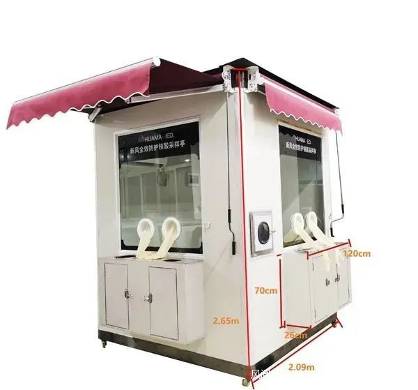 廣州華邁醫用研發的新一代核酸採樣亭為八面採亭,兩採一登記,後期可做公安治安亭或者交警交通崗等,兩年免費質保,重在利用率和價值最大化。在設計過程中,採用了更加便利貼心、人性化的設計,採集倉通過正壓防護隔離病毒,搭載紫外消殺、高效過濾等設施,並通過新風過濾、海爾冷暖空調等為防控人員打造安全舒適的採樣環境,斜面無死角工作台、大孔徑寬角度工作孔、物料分類存貯櫃等設計,又使消毒、運輸、操作、採樣等環節更加方便,避免交叉感染。