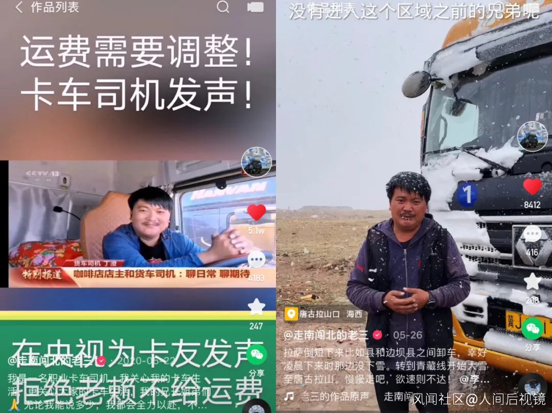原來我們去做卡車司機的採訪,瞭解的是他當下的狀況,但通過短視頻,如果對方的更新頻率比較高,並且具備一定的時間跨度,那麼你的跟蹤性就比較強;而且他們發佈的內容是原生性的,在一定程度上打破了由媒體或研究者單方面塑造和傳播的形象;另一方面,社會學調研往往需要花費大量時間去做預調查,期間可能會走很多彎路,短視頻的出現能夠有效縮短這個過程,尤其對我們時刻關注工業區動態的人來説,它是及時的,你可以在特定的時期,快速瞭解到這個行業和工人們普遍關注的問題,有助於你更快地去形成正式的調查問題。再來就是你如何去保證你研究的信度,很多采訪可能是一次性的,你怎麼評估對方告訴你的都是真實的?通過短視頻,你就可以結合他平時發佈的內容,看到他自然狀態下的真情流露,去進行綜合評判和查證,從而減少誤判。