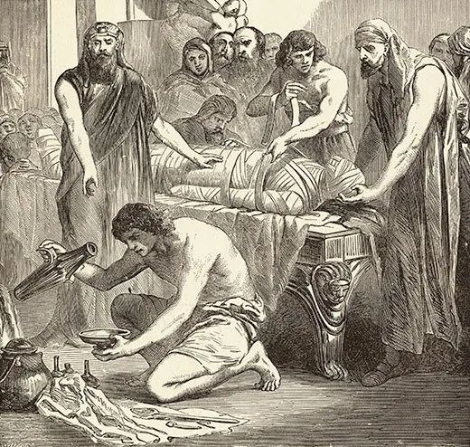 木乃伊不夠吃了怎麼辦?一個亞歷山大猶太人想了一招,自己生產木乃伊。他在埃及專門收集奴隸的屍體,也有可能是其他人的。然後在他們身上填補瀝青,綁上繃帶,放在陽光底下曬成幹,做出幾乎一比一的仿真木乃伊。