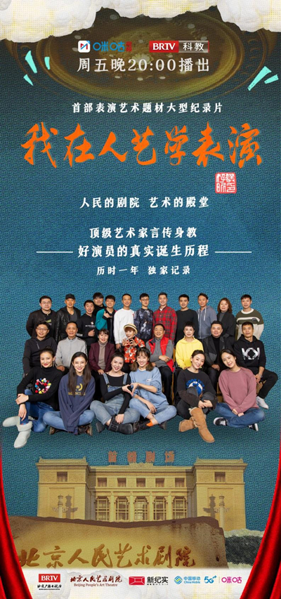 《我在人藝學表演》是我國首部表演藝術題材大型紀錄片,2019年12月,北京人民藝術劇院在停辦三十多年後再次招收學員開設"表演學員培訓班",希望用自己的方法培養一批跟人藝風格"合槽"的演員,歷時一年全程跟蹤記錄了從千餘名報考者中選拔出來的十五名學員在"表演學員培訓班"學習成長的故事。