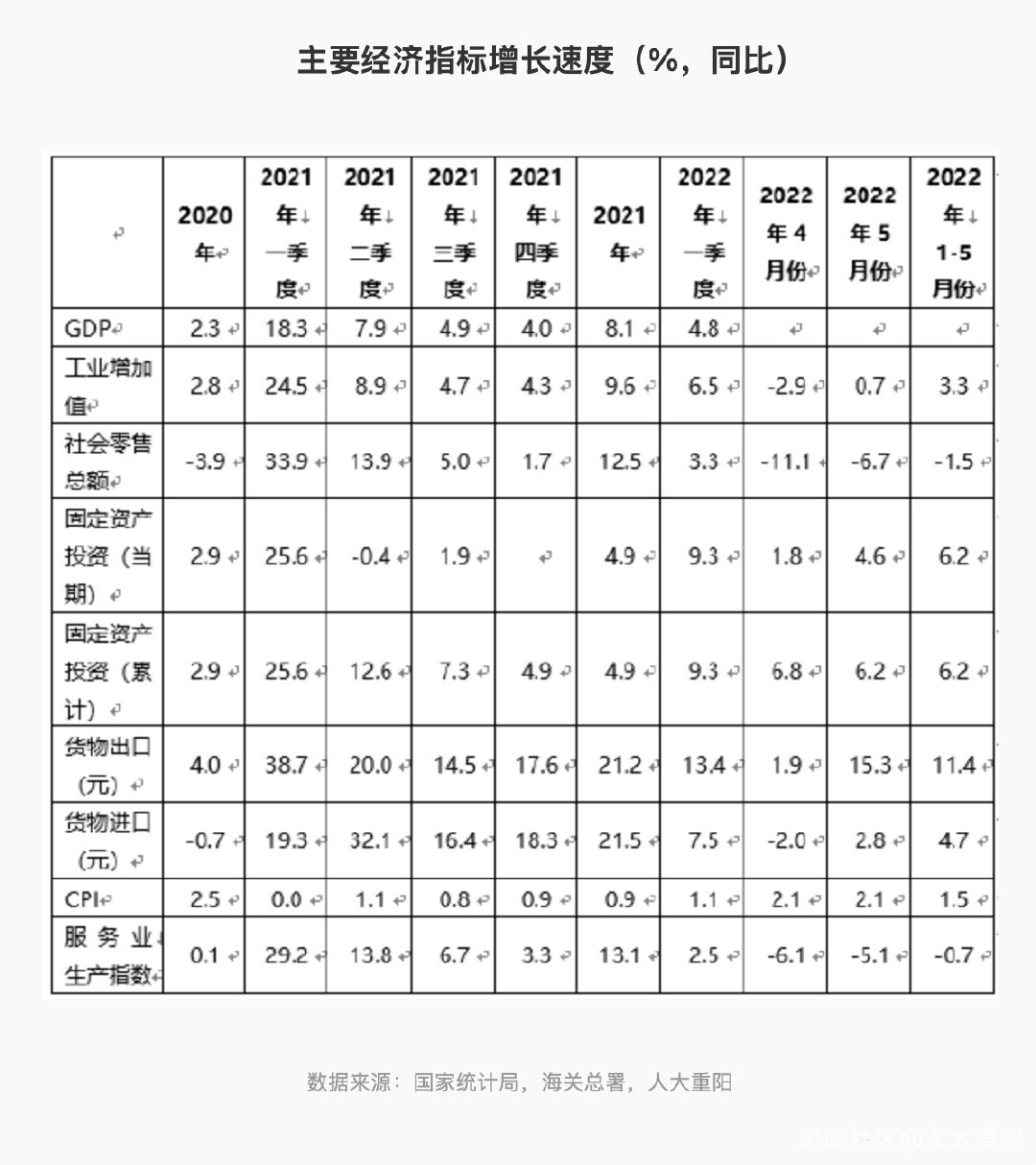 若要統計5月份的經濟增長速度,即GDP增長速度,綜合以上數據大致估算應該在0.5%左右。雖對我國而言這是一個很令人失望的速度,但比4月份的-3%左右可以説是一個明顯的反彈。