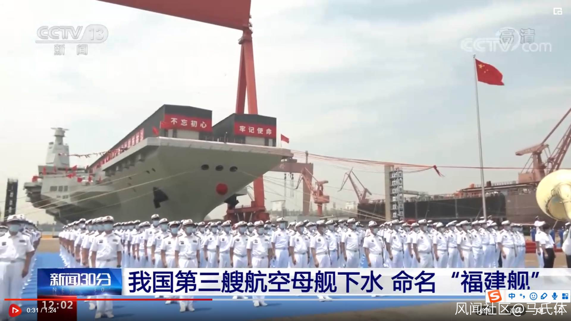 今天,我國第二艘國產航母、第一艘彈射型航母、美國以外世界上第一艘超級航母——“福建艦”在上海江南造船下水,標誌着我國海軍建設邁上新台階。