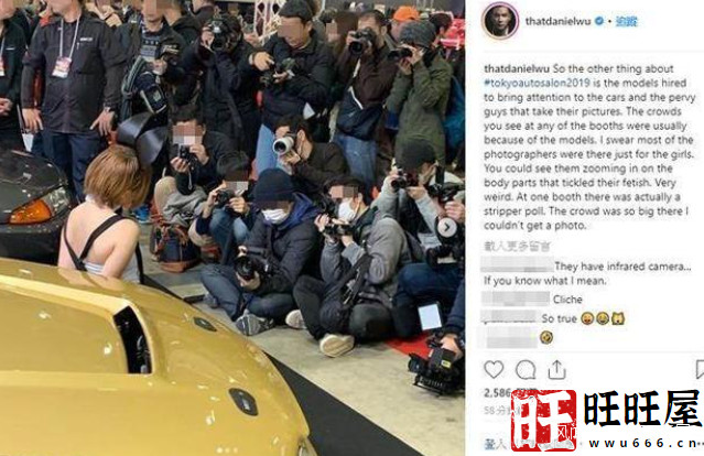2019年,吳彥祖去東京參加車展,逛着逛着就看見很多攝影師拿着機器懟着女模特,特意放大身體局部拍照。他上網吐槽這種現象:“我發誓,這裏大多數的攝影師都是為了女生而來,你可以發現他們還會放大女生的身體部位,以滿足、逗樂他們的戀物癖,超詭異。”