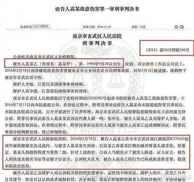 底下評論區都是粉絲的留言,表示無論如何都支持他。“高天佐小號回應風波“的話題也漸漸被更多人關注到,很多人開始去扒:此人之前經歷了什麼“冤屈”。結果,一扒才知道,2016年高天佐成名前曾在KTV把一名女生打成重傷二級!法院判決書中清清楚楚寫道:“與被害人發生糾紛後,高某乙將葛某打倒在地,用腳踹葛某的頭、頸部,致葛某頭部受傷,頭部損傷程度為重傷二級”。由於高天佐主動投案,對事實供認不諱,並積極賠償受害人損失76.5萬,最終“被判處有期徒刑三年,緩刑兩年“。