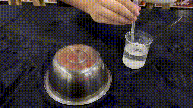 將溶液滴在不鏽鋼碗底