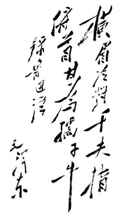 毛主席之所以推崇魯迅,一是因為魯迅的政治的遠見:他用顯微鏡和望遠鏡觀察社會,所以看得遠,看得真;二是因為魯迅的鬥爭精神:他看清了政治方向,就向着一個目標奮勇地鬥爭下去,決不中途投降妥協;三是因為魯迅的犧牲精神:他一點也不畏懼敵人對於他的威脅、利誘與殘害,他一點不避鋒芒地把鋼刀一樣的筆刺向他所憎恨的一切。