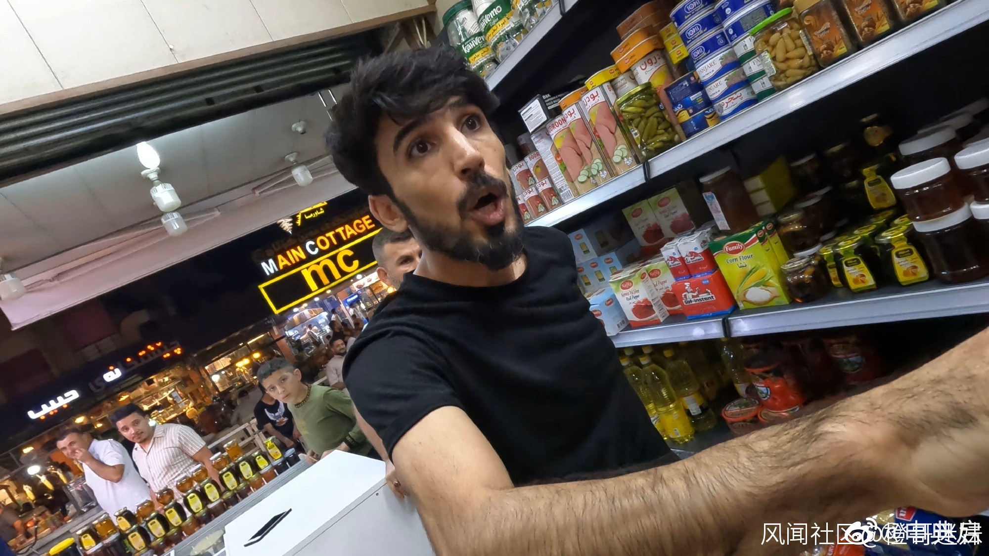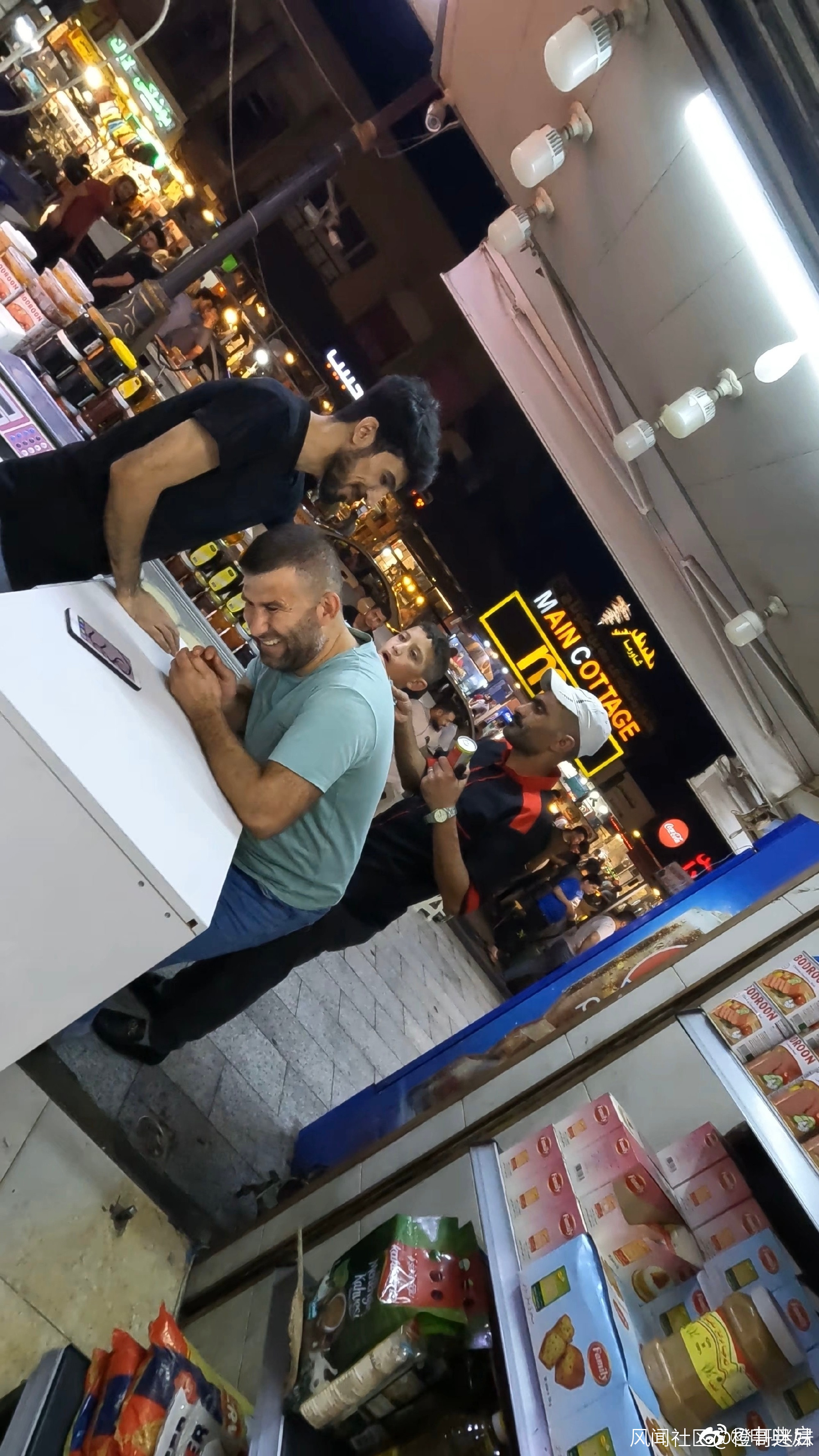 今晚,我在埃爾比勒街頭逛逛,錄製一下這條街道的街景。路過一個紅茶館時,一個藍色衣服的中年男子(之後簡稱藍衣男)叫住了我,於是我回頭過去看他叫我幹啥?