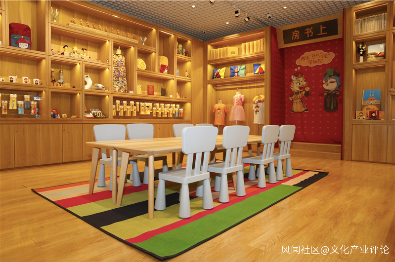 △總面積約200平方米,展示了近百餘件專門為兒童設計的各類故宮文創產品。店內按照功能劃分設置了三個區域,分別為“上書房”“互動教學區”“家長等待區”,同時可容納約20名兒童。