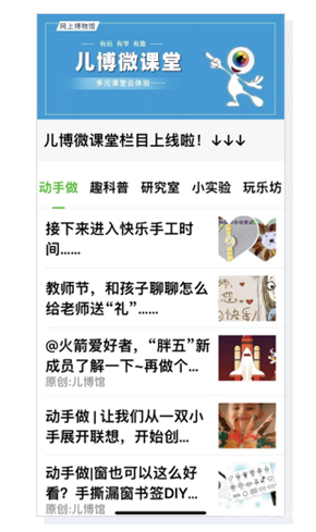 同時,線上推出的“兒博微課堂”,亦拉近了博物館與親子家庭之間的距離,實現了互動性活動空間上的創新。