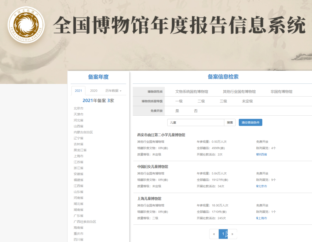 國家文物局,全國博物館年度報告