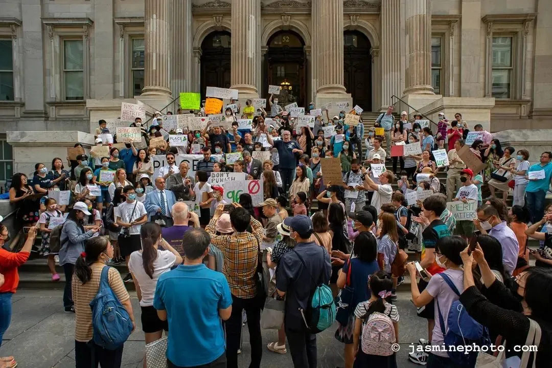 在社區團體“加速課程教育家長領袖”的組織下,這些家庭要求教育局恢復五個區160所高中的擇優錄取標準。