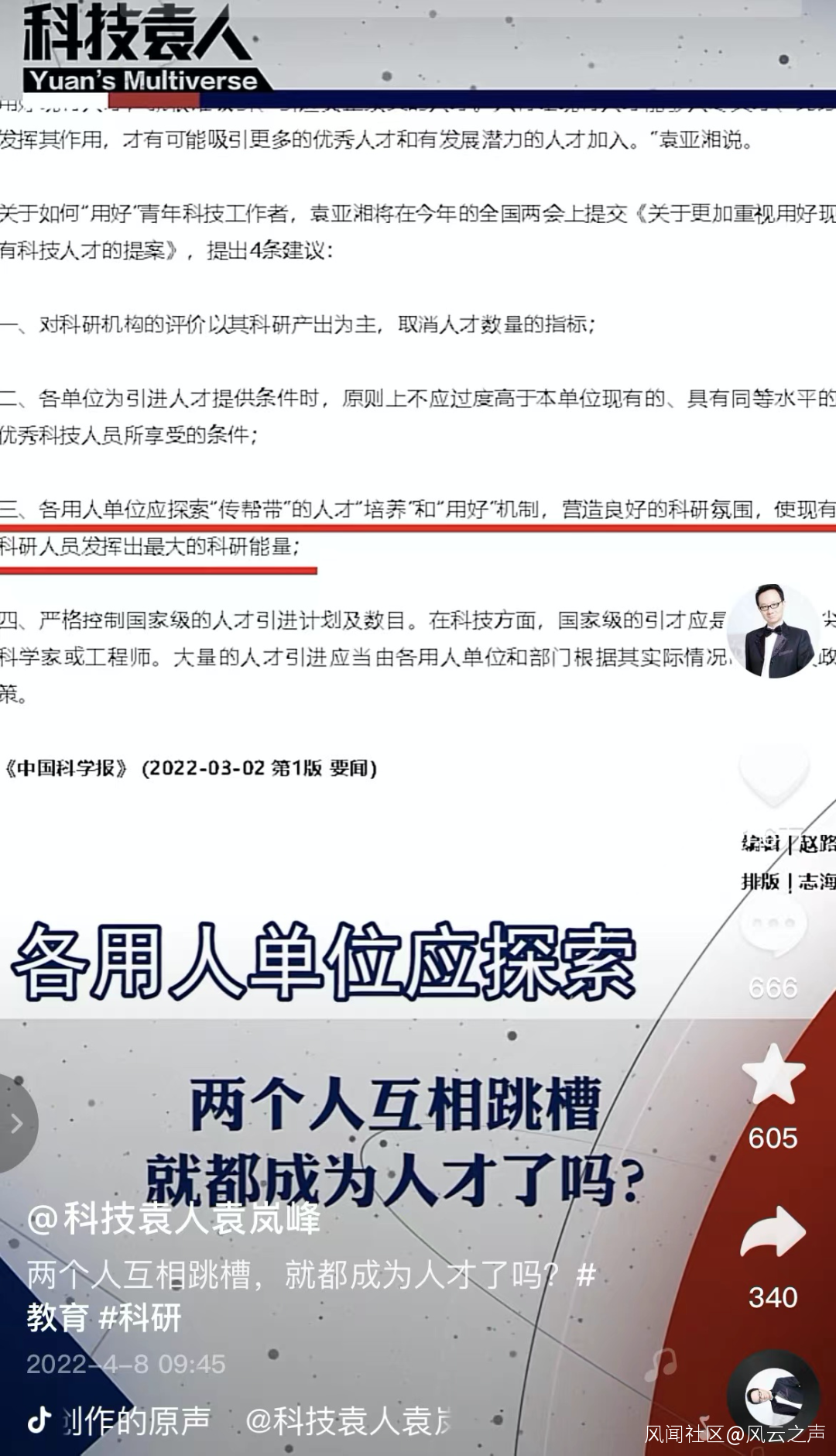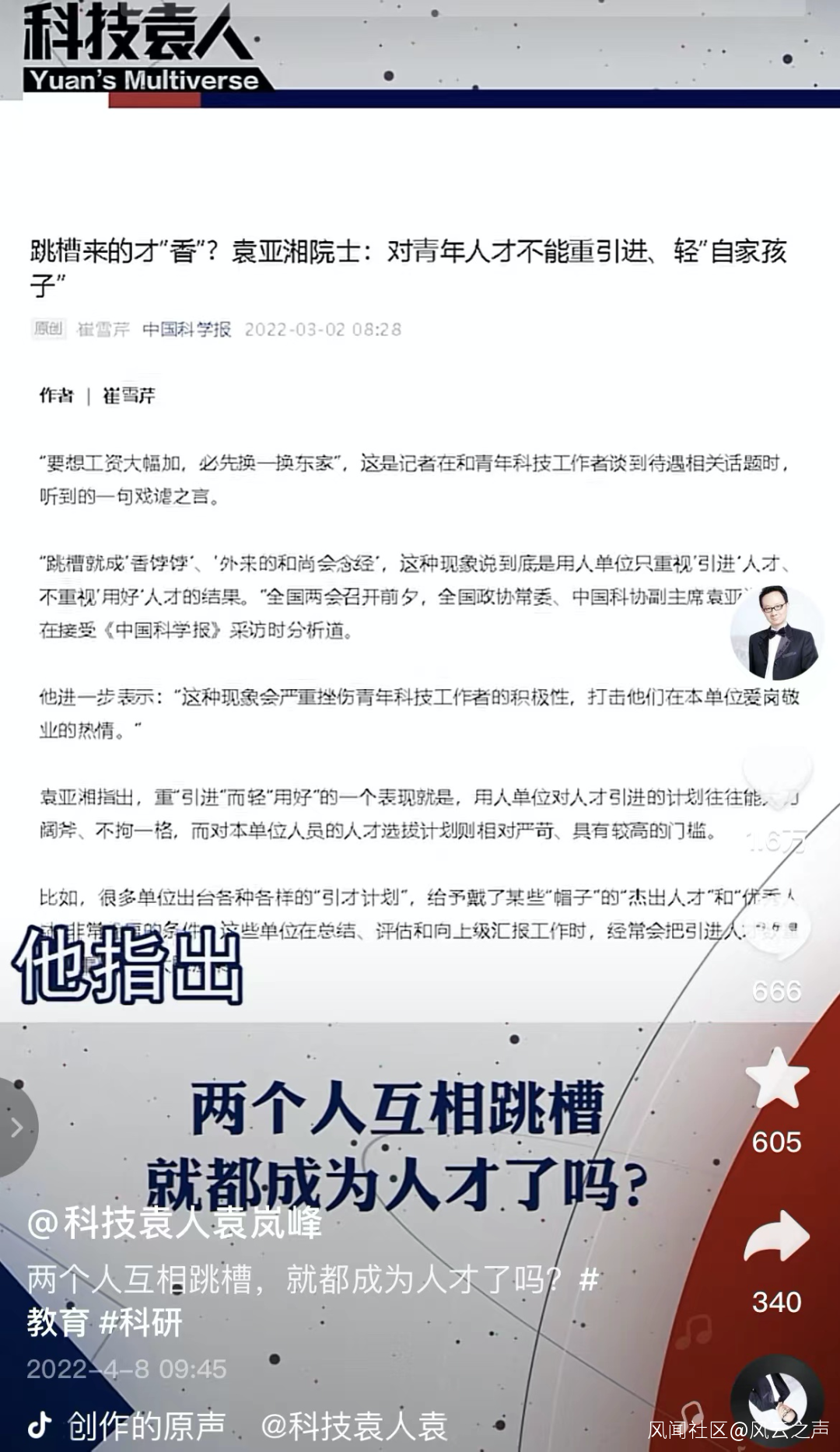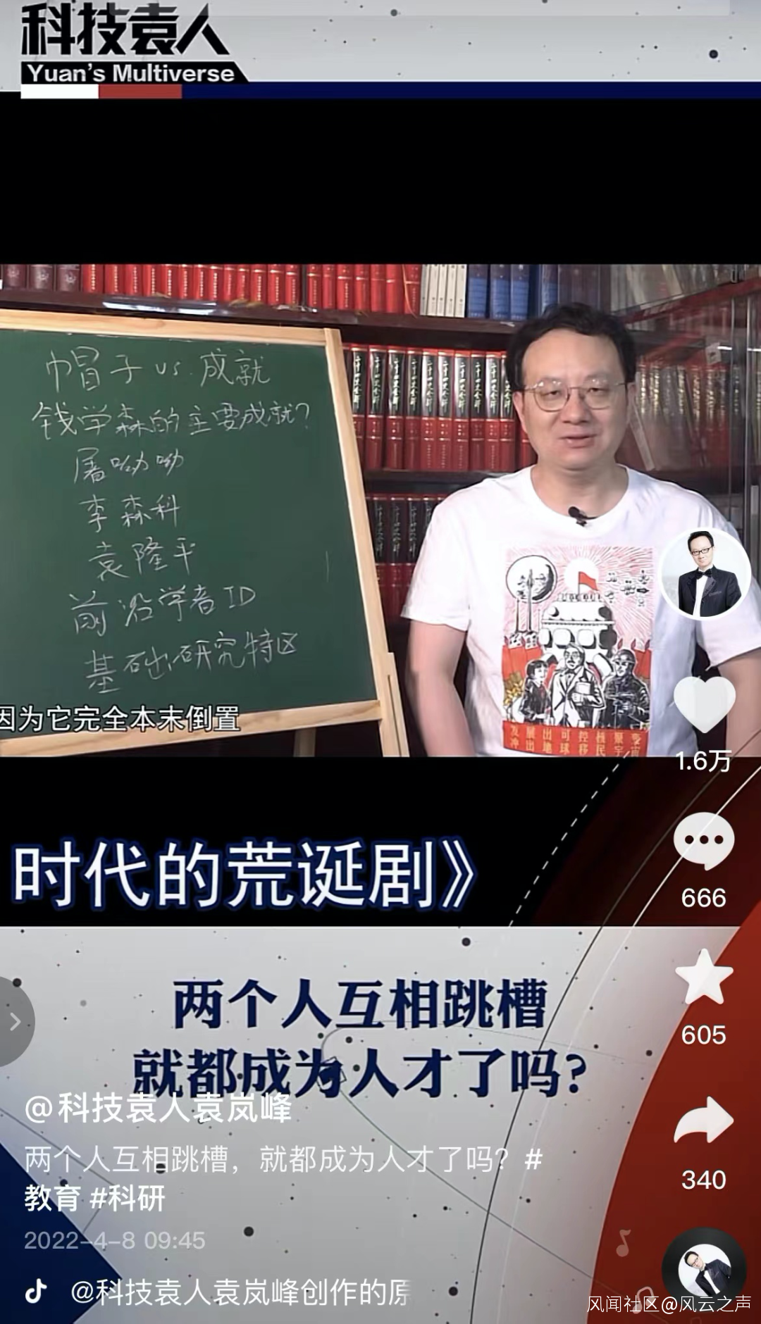 請問你有沒有見過這樣的宣傳:本單位有多少位院士,多少頂各種帽子,引進了多少人才?你肯定見過,而且到處都是。但仔細想想,這種指標合適嗎?其實這是科研的投入,而不是產出。真正有價值的應該是產出,如本單位有多少引領世界的成果。如果把投入當成績,就好比一個企業熱衷於宣傳自己花了多少錢而不是賺了多少錢一樣,這是本末倒置。我以前做過一期節目《拿帽子當成就,時代的荒誕劇 | 袁嵐峯》,講的就是這種思維方式。