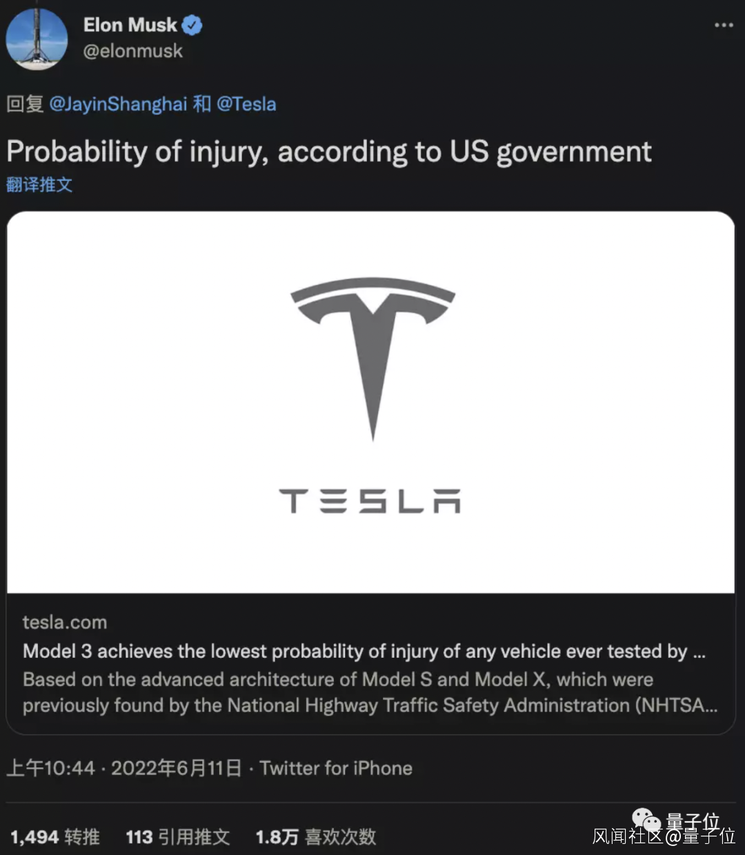 這是對前幾日上海特斯拉車禍中“車毀人未受傷”事件的回應。
