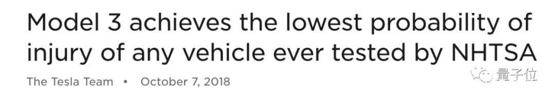 該報告稱特斯拉的Model S(2014年出產)和Model X(2015年出產)經NHTSA先前的所有測試,就已經證明這兩種車型是所有車中發生事故後受傷概率最低的。