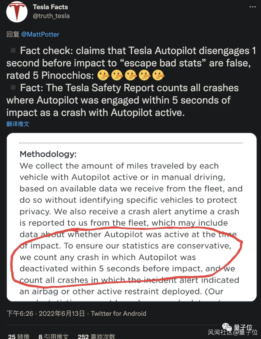 實際上,特斯拉在事故發生1秒前中斷Autopilot並不會將鍋甩給人類,他們在統計特斯拉事故時,只要碰撞發生時5秒內Autopilot在工作,就會把責任算給Autopilot。