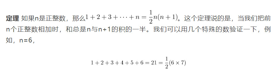 這裏我們採用由一塊加上兩塊再加上三塊等這樣階梯式的結構,如圖2陰影部分所示;用方塊擺出n×(n+1)的矩形排列。這個矩形是由兩個完全相圖同的階梯組成的,矩形的面積等於它的長和寬的積,即n×(n+1) ,因此這個階梯的面積一定是矩形面積的一半,即