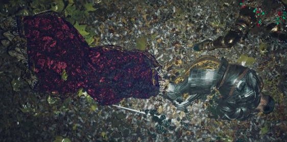 從頭到尾,沒有一句台詞,只有鳥叫、馬蹄、金屬碰撞聲與金屬般尖利的歌聲。