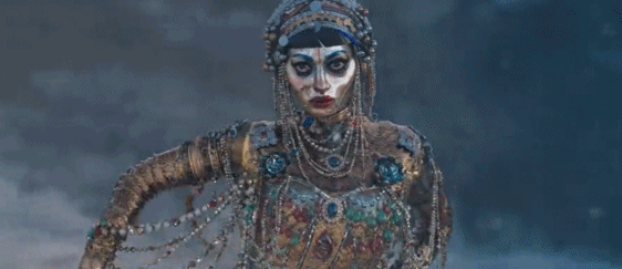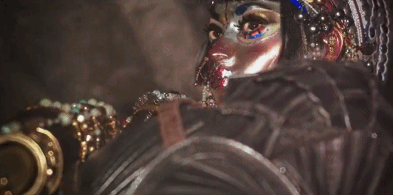 女主身上的珠寶等同於資源;女主歌喉喚起的是人類的貪慾;士兵(男人)對她的一系列動作是對資源(財富)的攫取。