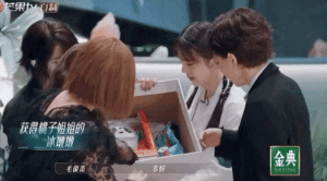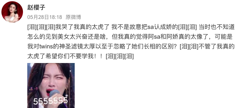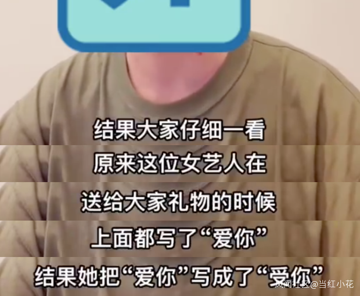 前段時間王心凌的《愛你》爆了,傳聞趙櫻子為了碰瓷,就給姐姐們送了禮物,上面的祝福語全寫了“愛你”。
