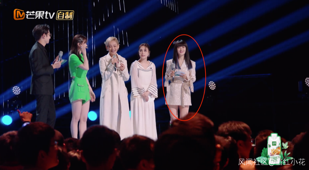 寧靜和阿嬌都是米黃色的衣服,趙櫻子作為隊友卻穿的熒光綠,在舞台上極其扎眼。