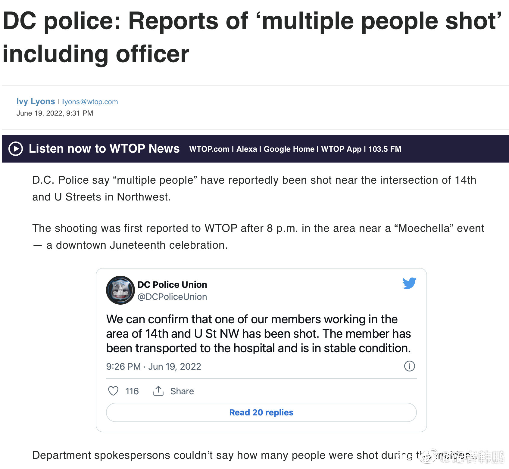 槍擊的地方,正在舉辦活動,慶祝黑人節日Juneteenth。是否是種族仇恨犯罪,暫時不明。我會隨時跟大家更新情況。