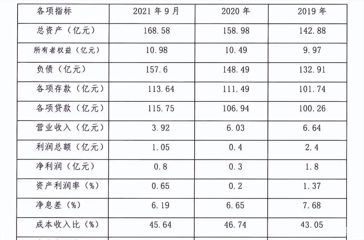 最新業績數據顯示,截至2021年9月30日,修文農商行總資產168.58億元,總負債157.6億元,其中各項存款餘額113.61億元,較年初僅增加2.15億元。2021年前三季度,該行營業收入3.92億元,同比下滑8.71%;淨利潤0.8億元,同比下滑13.96%。