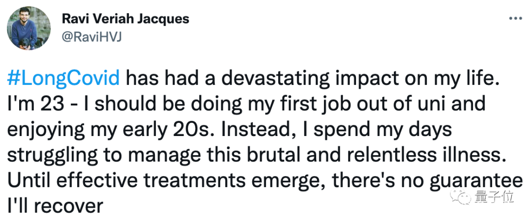 確診後,他每天至少要在牀上躺16個小時,無法走路超過15分鐘(否則會極度疲倦),失去味覺、嗅覺的同時還伴隨輕微耳鳴和腸胃不適。