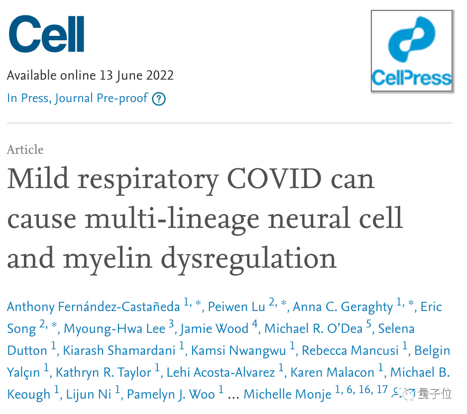 就在幾天前,來自斯坦福&耶魯登上《Cell》的一項研究表明,新冠輕症仍可導致神經細胞和髓鞘消失。