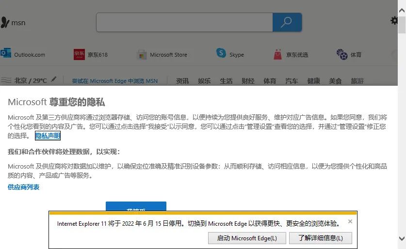 IE於2022年6月15日停用,並且不再獲得官方支持。Edge取代IE,併成為Windows 10和Windows 11的內置瀏覽器。