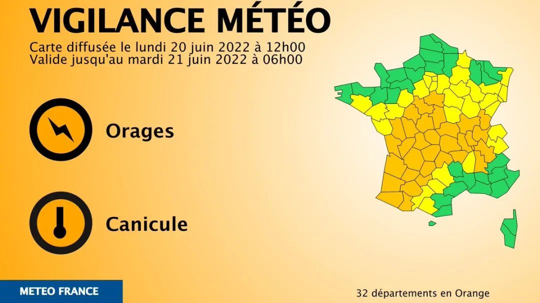 法國氣象局預測,熱浪將在今日逐漸結束,而新一波風暴將會在傍晚抵達大西洋沿岸**,目前21個省處於雷暴橙色預警,仍有11個省處於熱浪橙色預警。**
