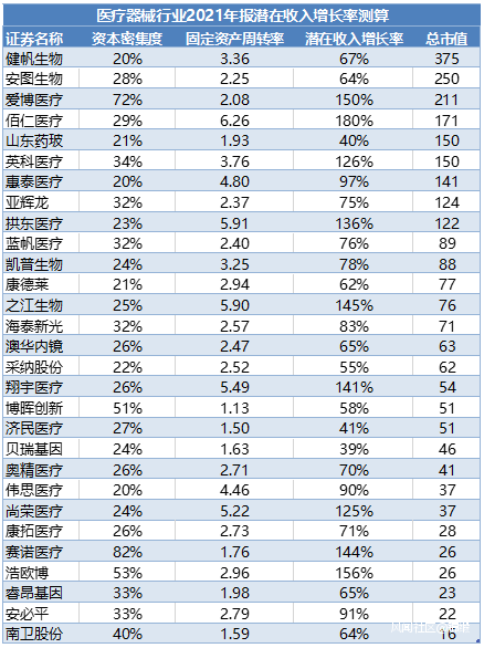 上圖是符合條件的,潛在增長率較高的醫療器械上市公司,其中市值較大的上市公司包括健帆生物、安圖生物、愛博醫療、佰仁醫療、山東藥玻、英科醫療等,有對醫療器械行業感興趣的朋友可以自己去研究。