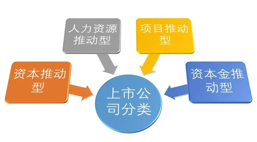 我們可以用經驗將上市公司分成四類,資本推動型,人力資源推動型、項目推動型以及資本金推動型。