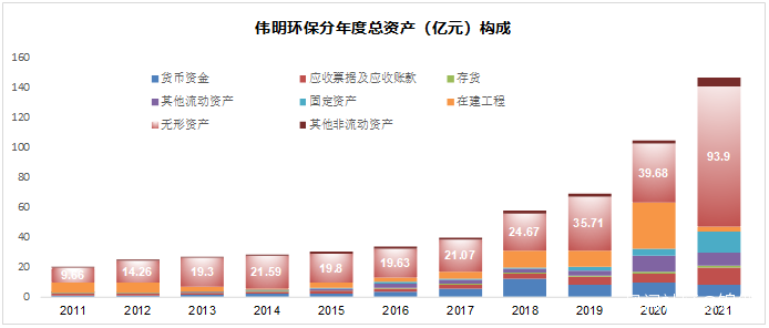 偉明環保2021年報總資產147億人民幣,這其中無形資產就有94億,佔比接近三分之二,而這麼重要的項目,在年報中還不到一頁,研究難度很大。