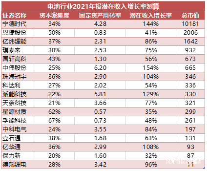 電力設備行業有兩個細分行業的中位數潛在收入增長率超過35%,即電池和光伏設備。