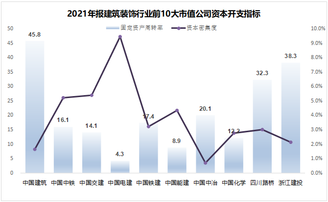 除了中國電建、中國能建的固定資產週轉率在10以下,其他主要的建築裝飾公司固定資產週轉率都在10以上,這也意味着這個指標的意義不大。