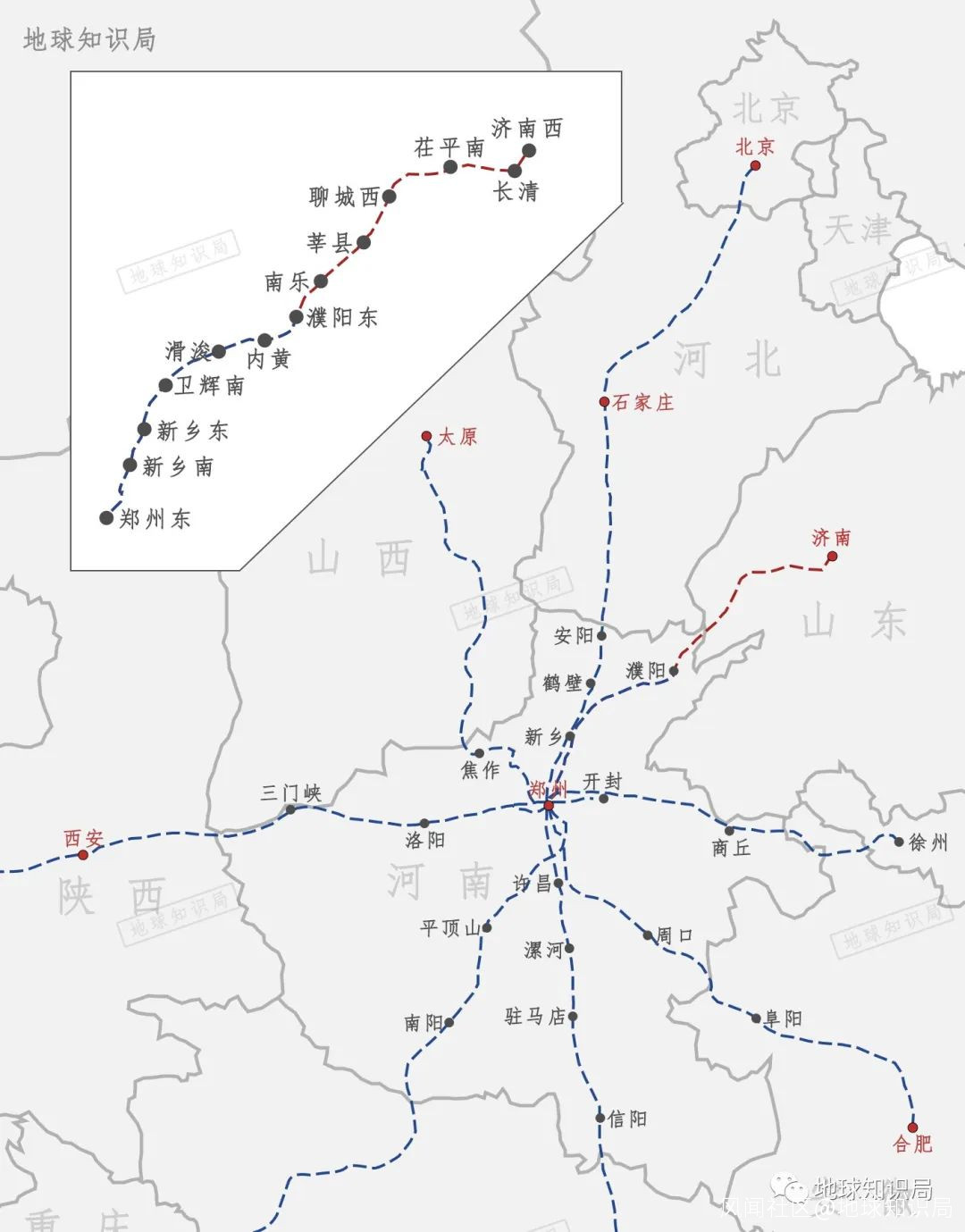 濟鄭高鐵濮鄭段的建成運營,標誌着作為河南“米”字形高鐵網右上角的“最後一筆”正式收官,河南省實現“市市通高鐵”,這也是全國首個“米”字形快速鐵路網。