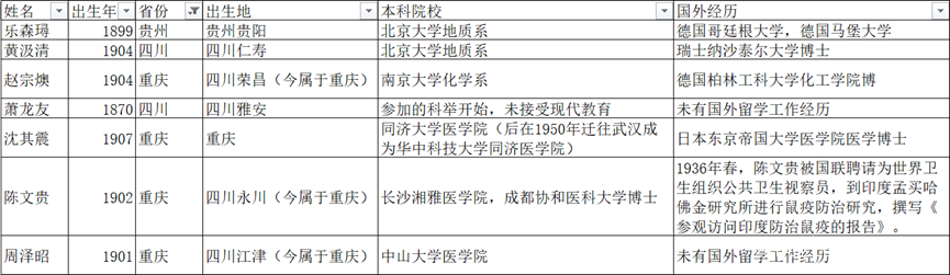 而西南地區,則是靠重慶(4人),四川(2人),貴州(1人)三省了,當然了當時重慶還屬於四川。 在舊中國時期,西南地區的高等教育還是比較落後的,西部地區的院士只有陳文貴是成都協和醫科大學的博士畢業,其他人都沒有西部高校就讀的經歷,都是北京,南京,上海,長沙,廣東等地的高校就讀。