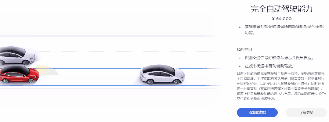 你買車的時候,價值 32000 元的 “ 增強版自動輔助駕駛功能 ” 和價值 64000 的 “ 完全自動駕駛能力 ” 都不選配。